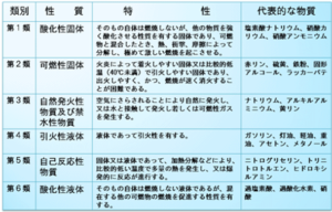 それぞれの類に属する物質は、特有の危険性を持っており、保管方法や取り扱い方法も異なります。