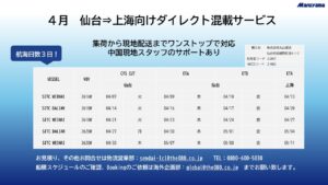 仙台発 上海向けダイレクトLCLサービス 開始!